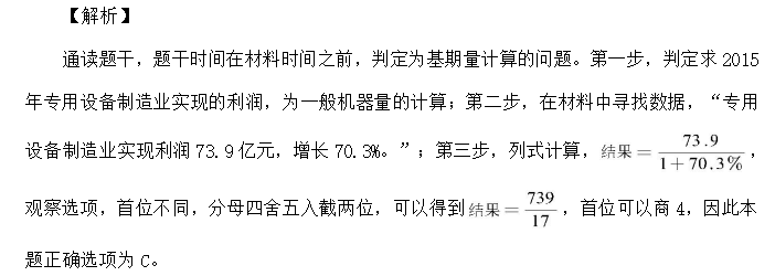 【例 1】2015 年该市规模以上专用设备制造业约实现利润多少亿元?